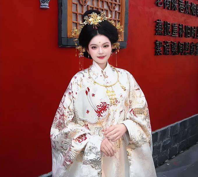 再来谈谈另一方面——一个17岁的年轻女孩,她参与了5次妈祖的巡游活动,其中大号的粉丝超过60万,小号的粉丝也达到了6万。她的作品充满了网络的感觉,手势和动作都非常流畅,她的写真照制作得非常精美,旗袍和汉服都被她一手抓着。