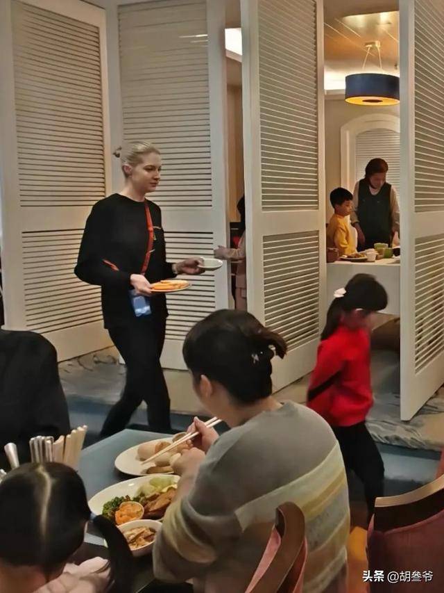 紧接着,还有网友在酒店的餐厅偶遇了李白带着女儿在吃饭。