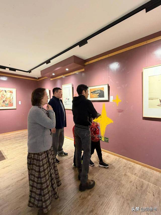 大年初四,有人在武汉的艺术馆碰见他带着龙凤胎看展,他没戴口罩,蹲在地上跟孩子说话,手指着展品,一脸宠溺。