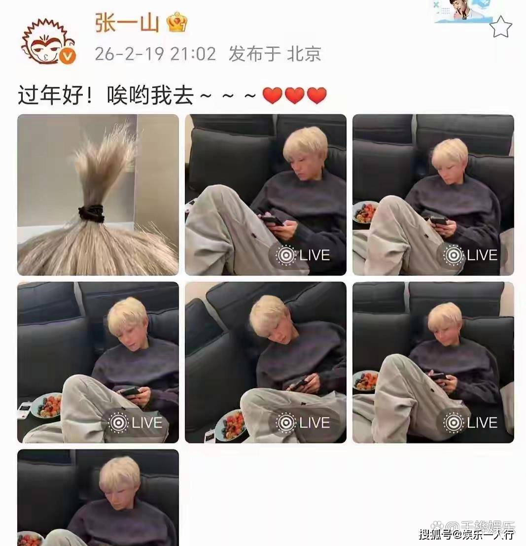 你见过33岁男人主动把头发染白,还扎个小揪揪的吗?更绝的是,他身边三个同龄发小,鬓角全是自然白,身材发福,脸上写满了“上班”两个字。只有他,躺在自家豪华客厅的沙发上,一手游戏手柄一手葡萄,笑得像个刚放寒假的中学生。这就是张一山大年初三晒出的聚会照,照片是他发小用“直男死亡视角”拍的,构图歪斜,角度清奇,他却乐呵呵地发出来,配文就五个字:“过年好,哎呦我去!”