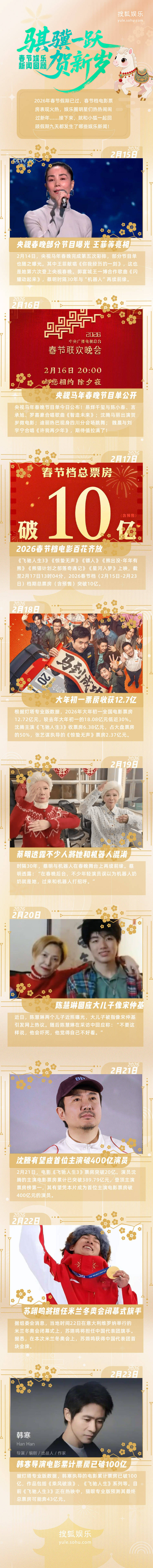 2月24日,为期9天的春节长假已正式落下帷幕,在此期间娱乐圈也发生了不少大事小情:春节档票房表现火热,张艺谋导演电影票房突破150亿,沈腾有望成为首位主演破400亿演员。【2月15
