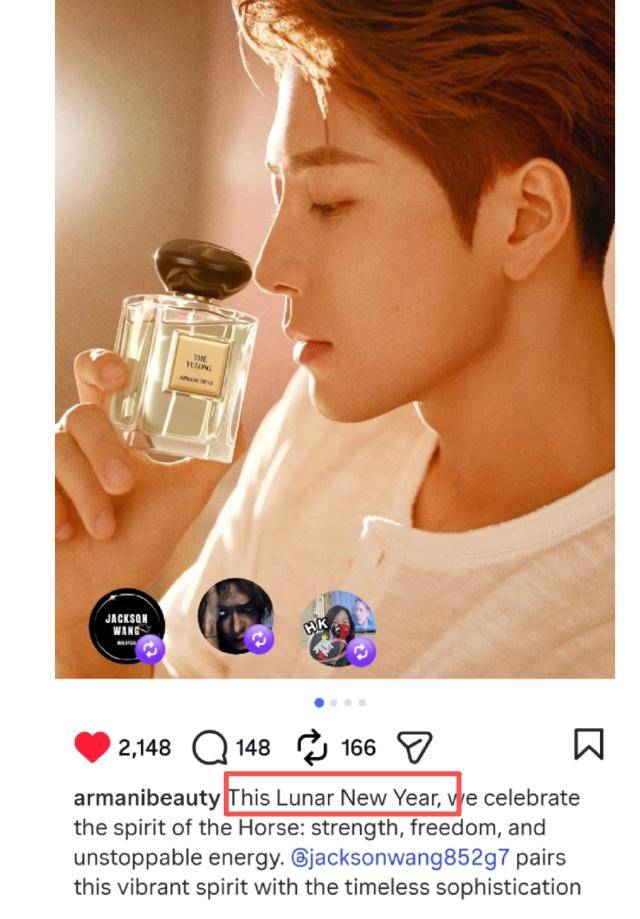 爱豆庆怜在转发一则品牌方的动态时,就带上了强调中国新年的祝福语,而且是连发两张图。