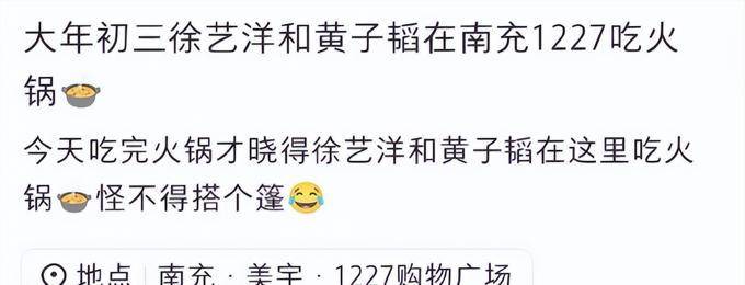 黄子韬夫妻俩这个年过的格外接地气,还现身一家火锅店临时搭的棚子吃饭。这 家火锅店 一看就 知道也是苍蝇馆子 了, 和网友 们想 的明星 们吃的 位置差 了一大截。也有网友晒