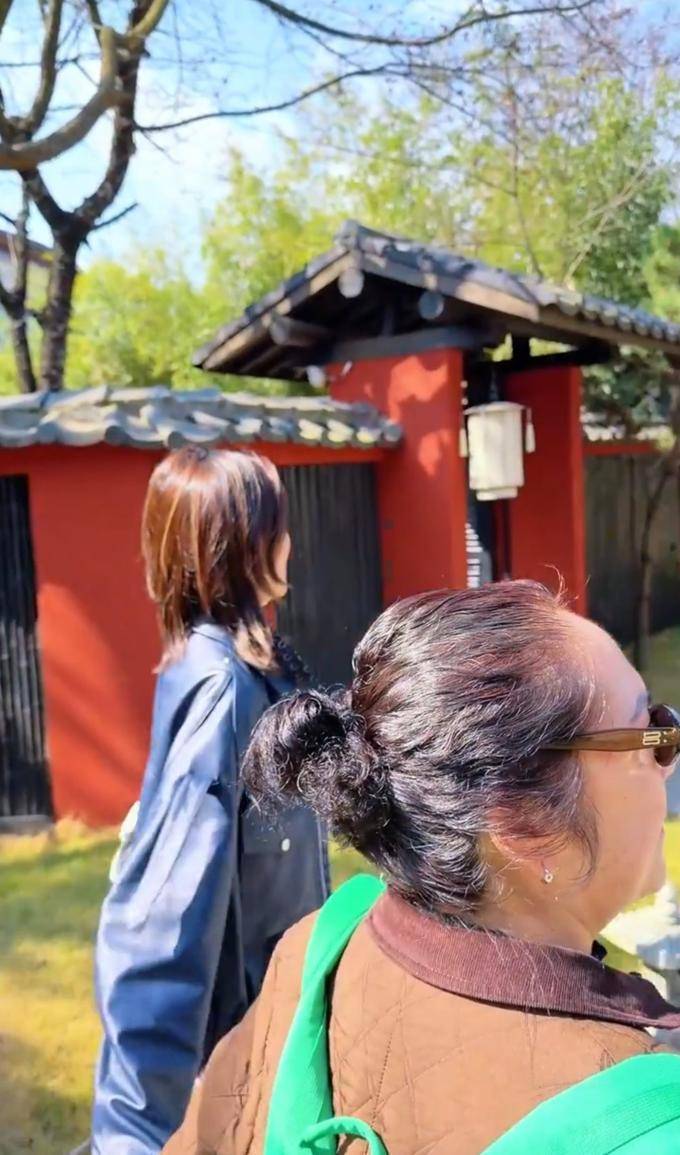 海哈金喜也和母亲携手走过小路。母亲看得相当显稚嫩,一头白头发还没见到,还可能被头发染过,毕竟如今头发已经被染得五颜六色。