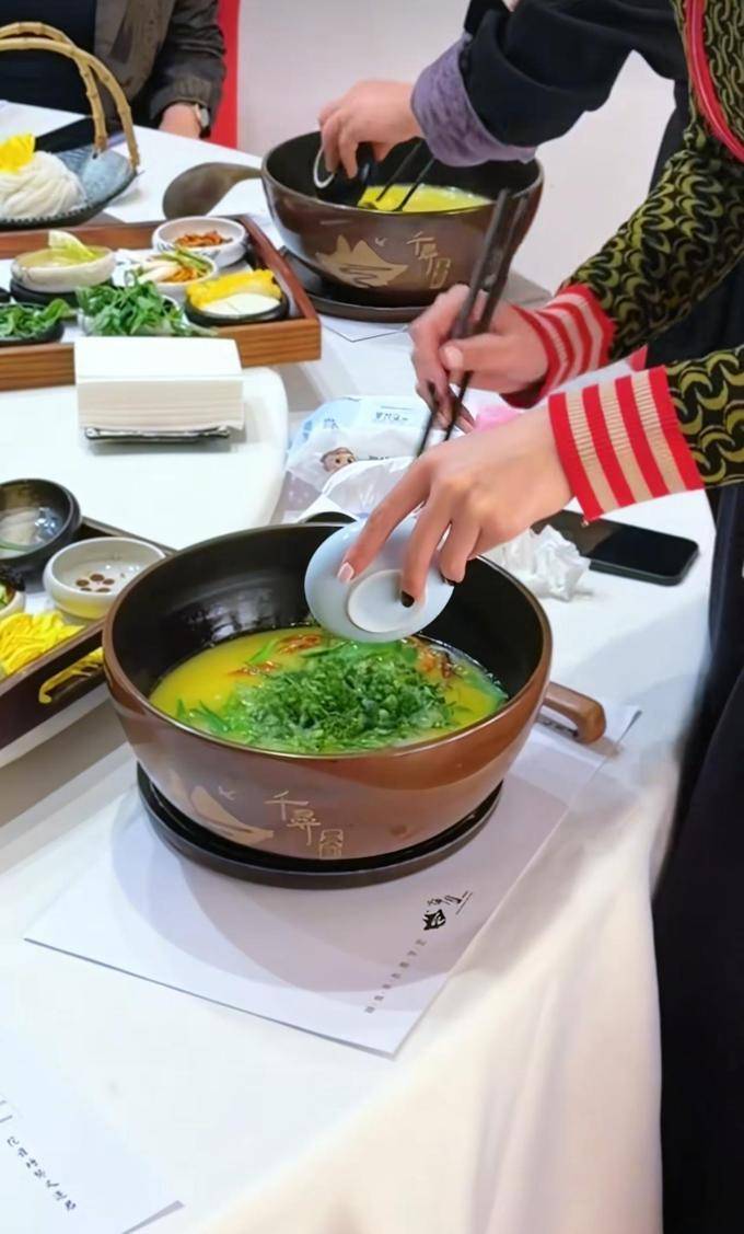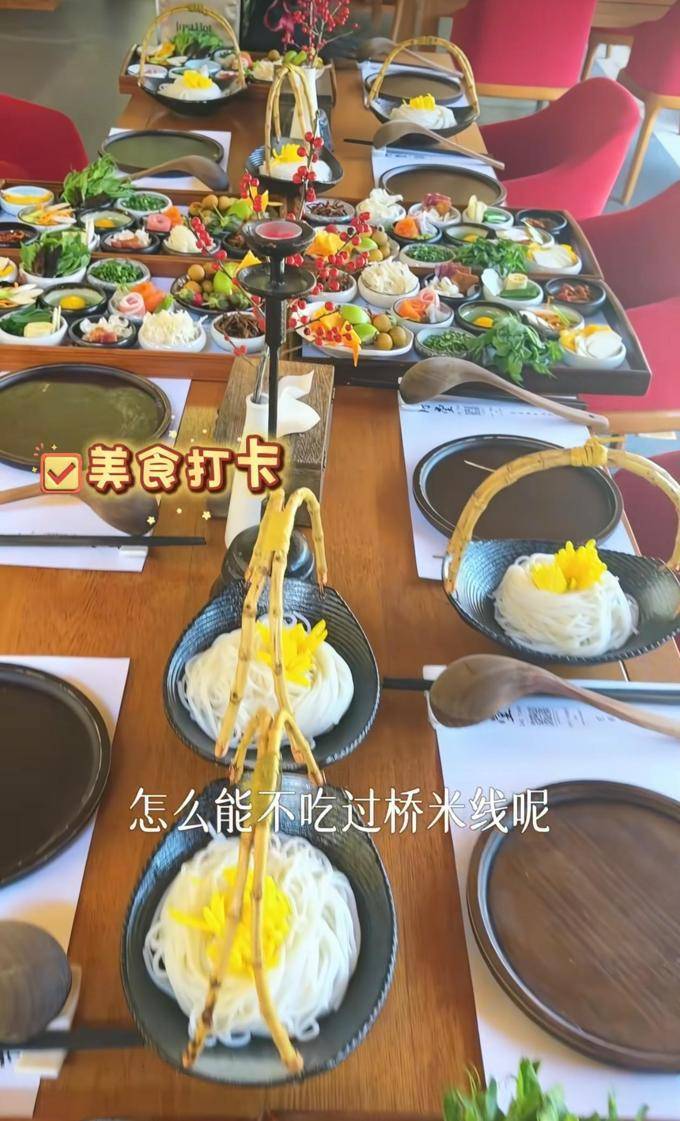 海哈金喜尝过之后,毫不犹豫地竖起了他的大拇指。我猜这段过桥米线的口感,的确相当出色!