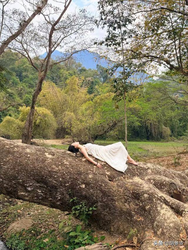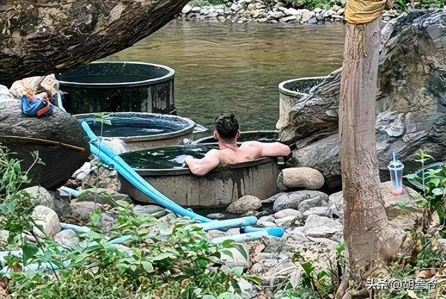另外,李嘉格还偷拍了一张小董独自坐在户外浴缸中泡澡的照片,背景是清迈满眼的绿意,阳光洒在他的身上。