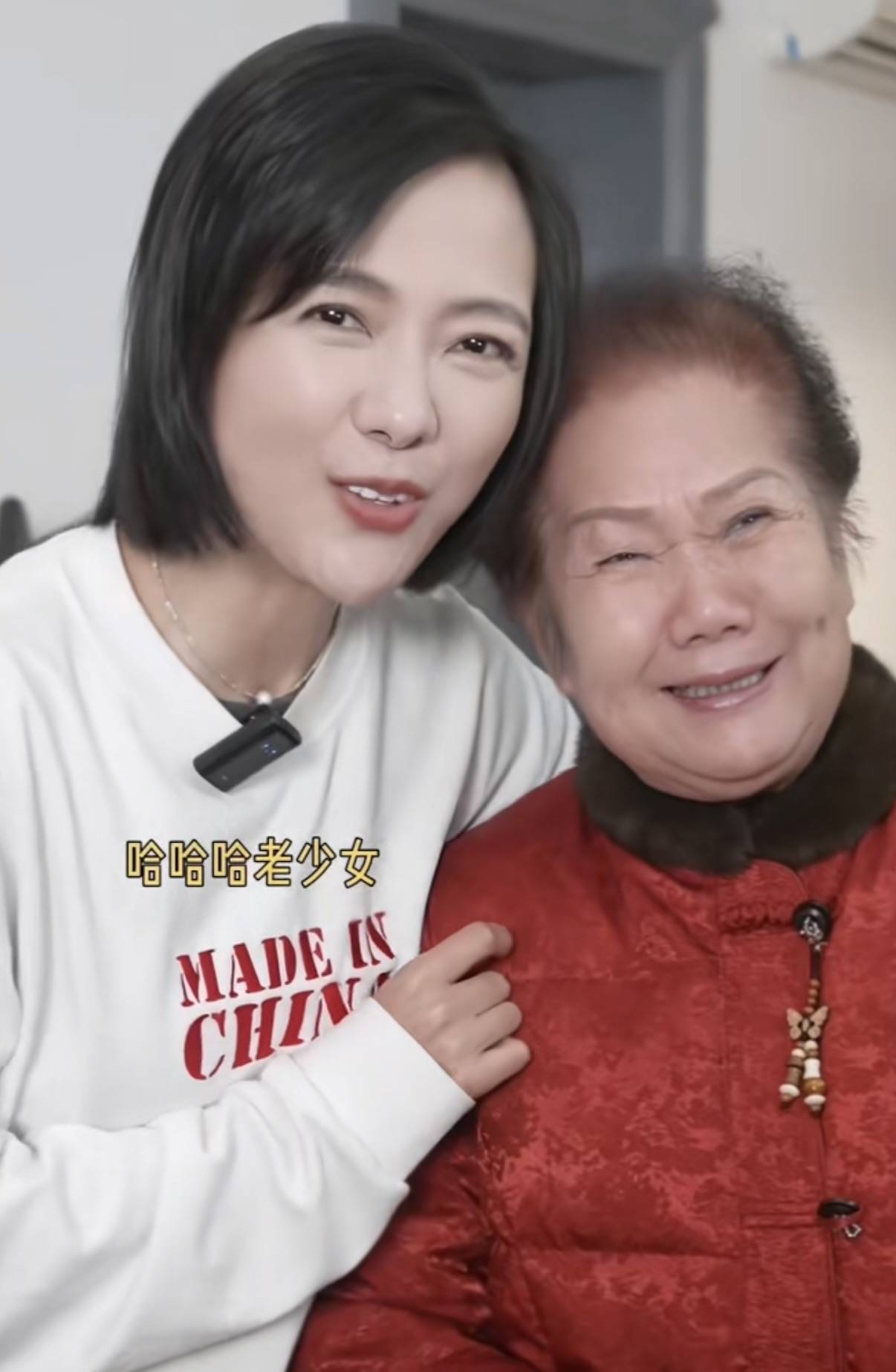 在杨乐乐的镜头下,看到了她慈祥的母亲。乐乐妈烫了一头微卷的头发,连眉毛也是纹过的一样,一看就是个精致爱美的老太太,年轻时候的肯定是个大美人。