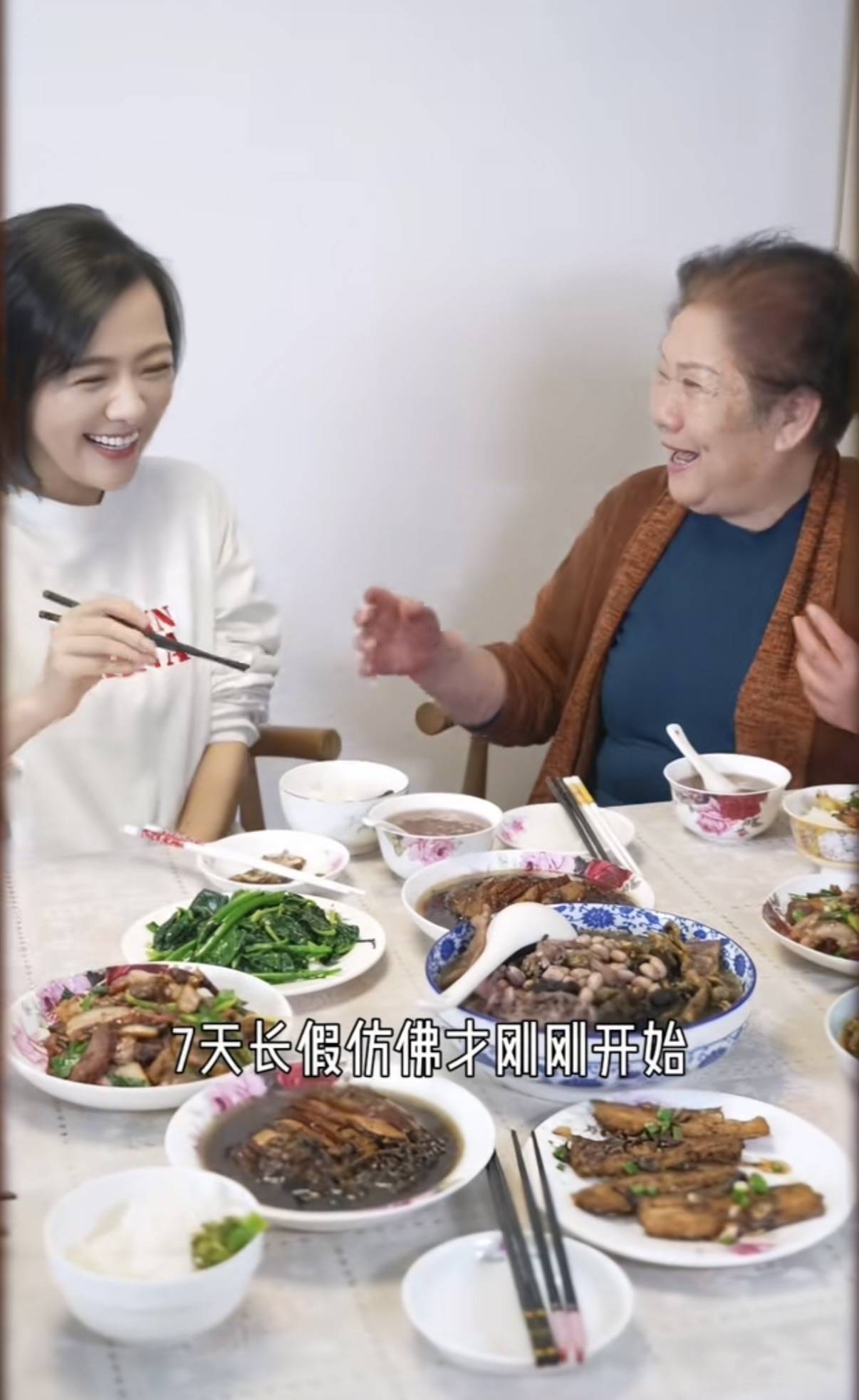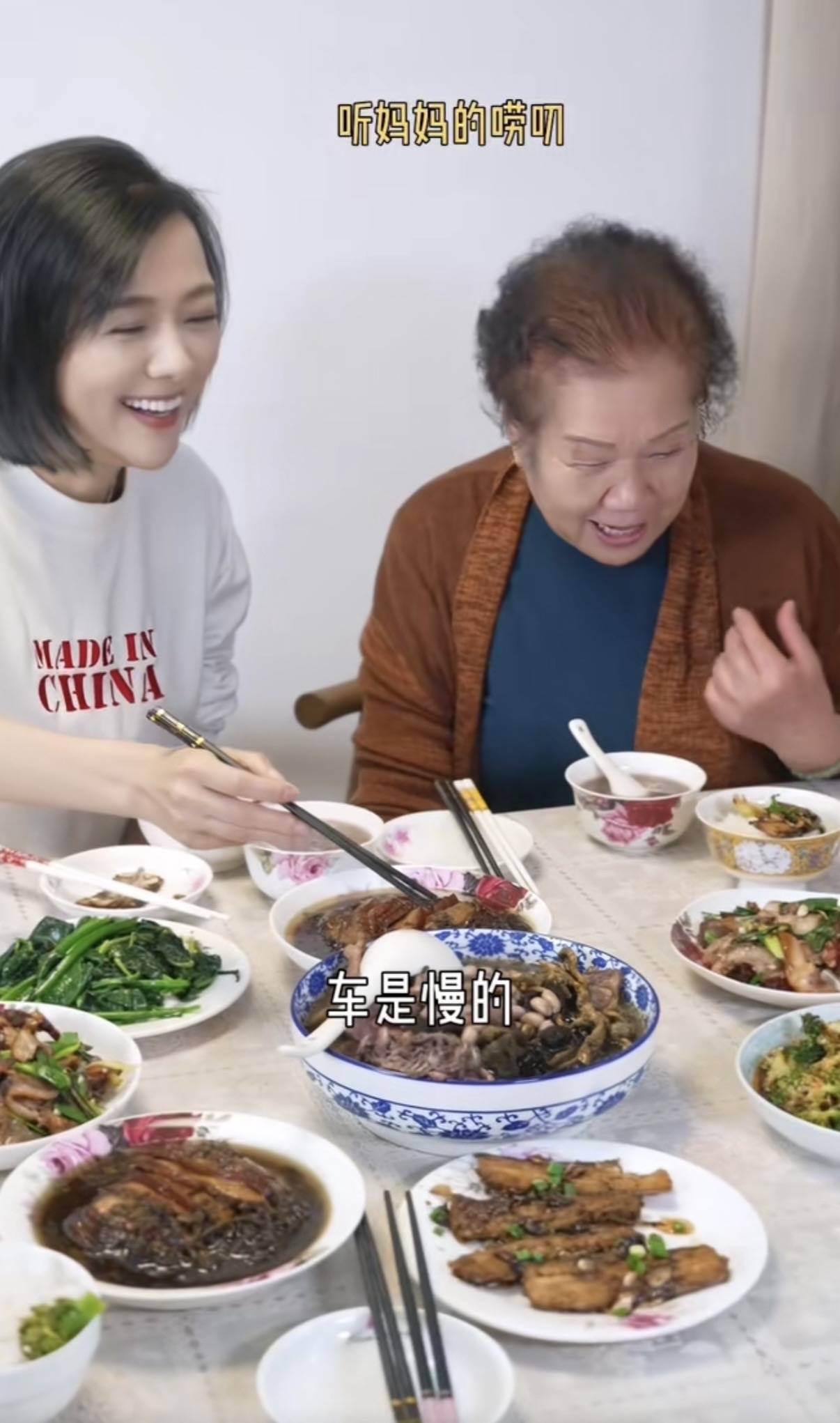 女儿回家,妈妈准备了一大桌子饭,全部都是女儿爱哭的。是家乡的味道、也是妈妈的味道,吃着妈妈做的饭,杨乐乐也非常开心,大概这就是团聚的意义吧。