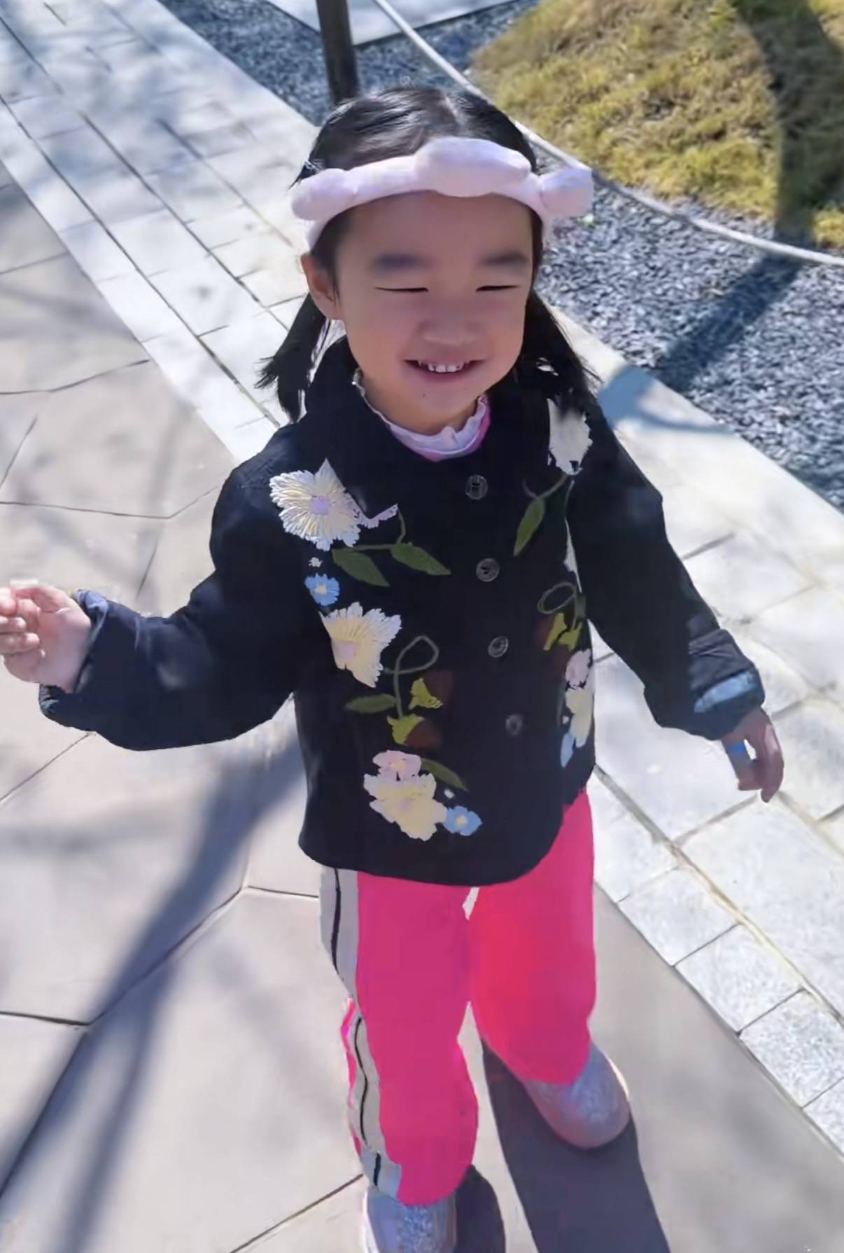 和爸爸妈妈在一起的夏夏非常开心,小姑娘拍了很多好看的照片。小圆脸、大脑门,真的是太像爸爸了。