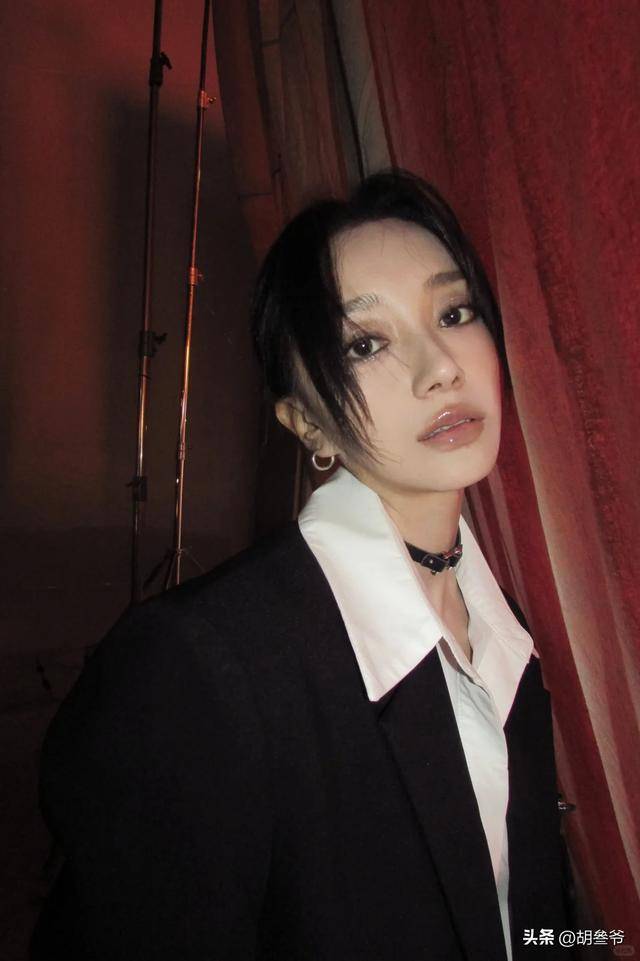 从那个圆脸的邻家少女,变成了瘦削的冷艳风格,面部轮廓变得更立体,妆容也开始走精致的女团风,烟熏妆配利落短发,整个人的气质和之前判若两人。
