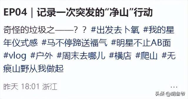 大家印象里的明星,就算是私下出行,不说前呼后拥,起码也是光鲜亮丽,别说上山捡垃圾了,就连去普通公园散步都可能精心打扮。