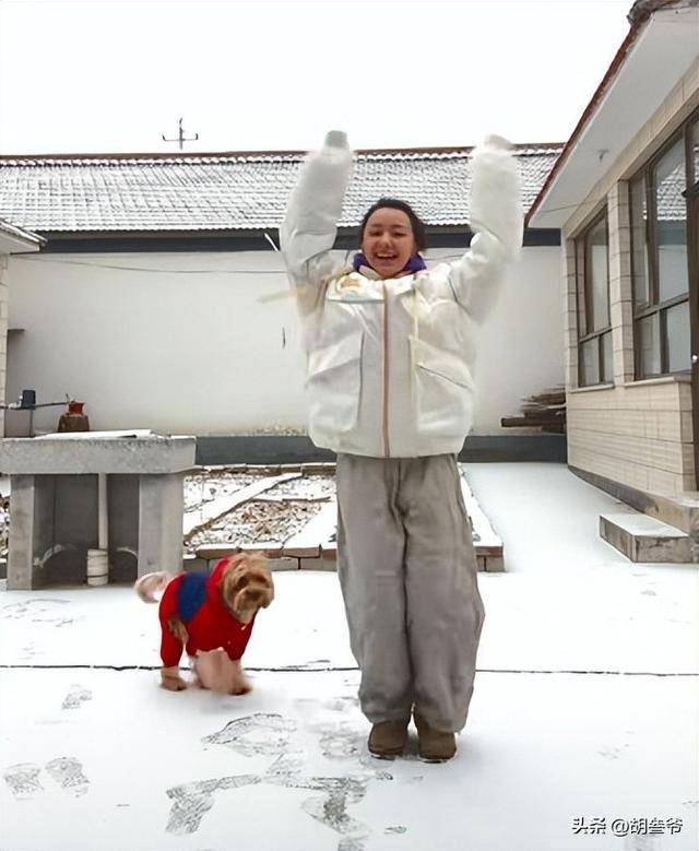 不拍戏的时候,她就在院子里遛狗、种菜,过着自给自足的日子,还晒出过追着狗在院子里跑的视频,画面里的快乐藏都藏不住。