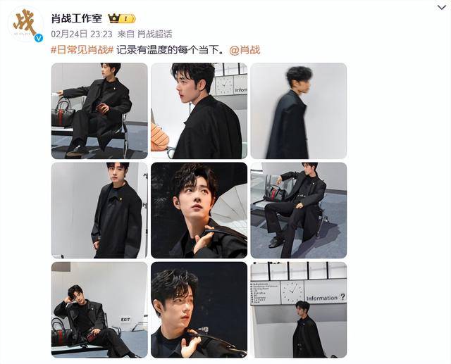 但说实话,这种“全黑”恰恰最难驾驭,穿不好就像个移动的影子,可肖战穿出了味道。