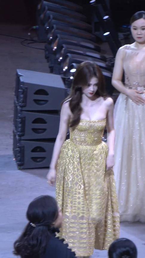 就拿前段时间的时尚盛典来说,她身着一袭香槟色丝绒礼服,领口是简约的V领设计,勾勒出柔和的线条,裙摆垂坠感十足,走动时自带温柔气场。