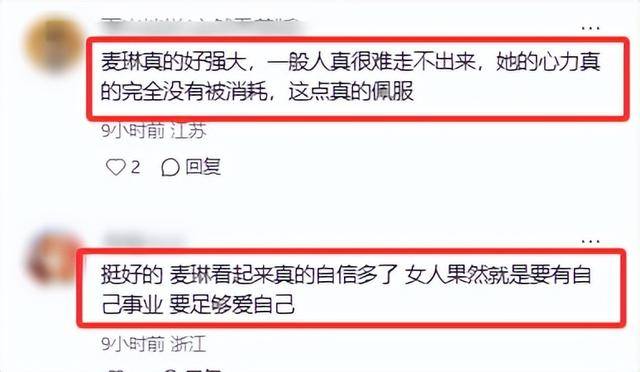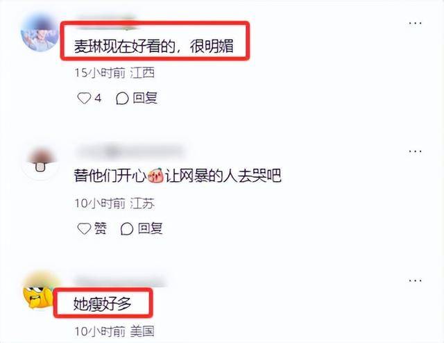 有网友留言说,真的不敢相信这是麦琳,和综艺里的样子完全是两个人,自信的女生真的会自带光芒。