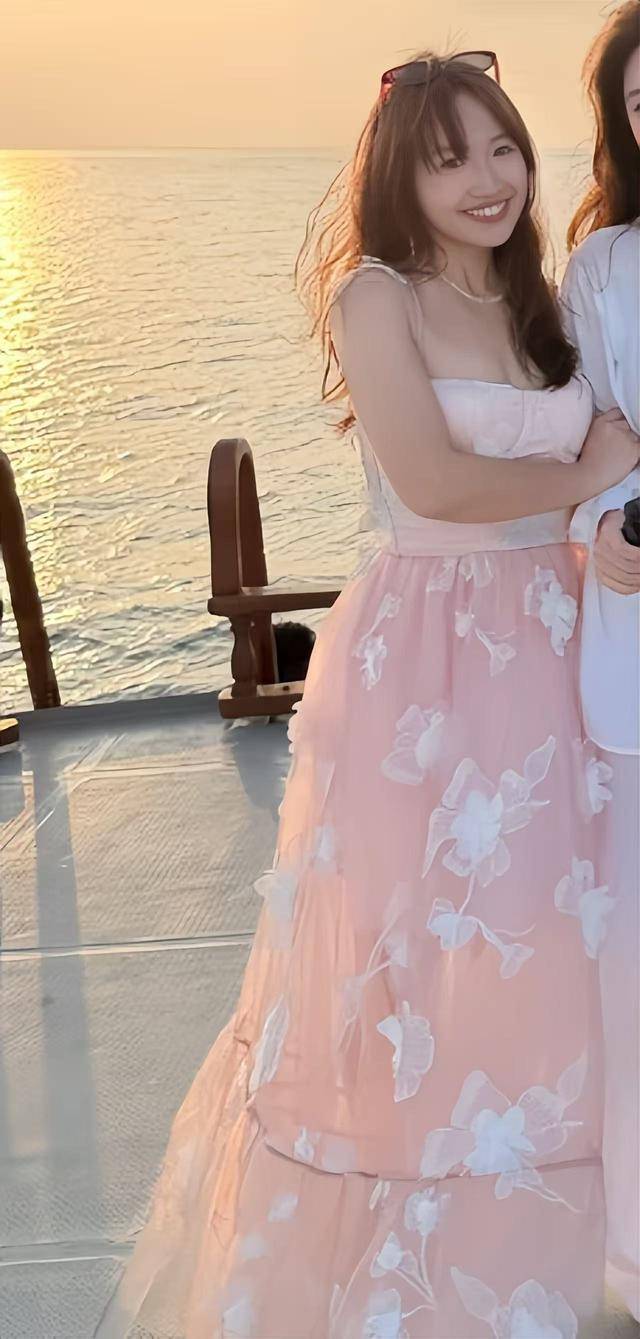 当天的麦琳穿了一条粉色的吊带长裙,裙身刚好贴合她的身形,没有多余的累赘感。