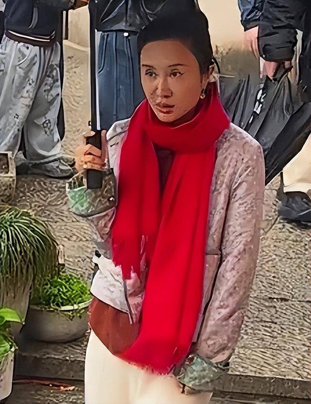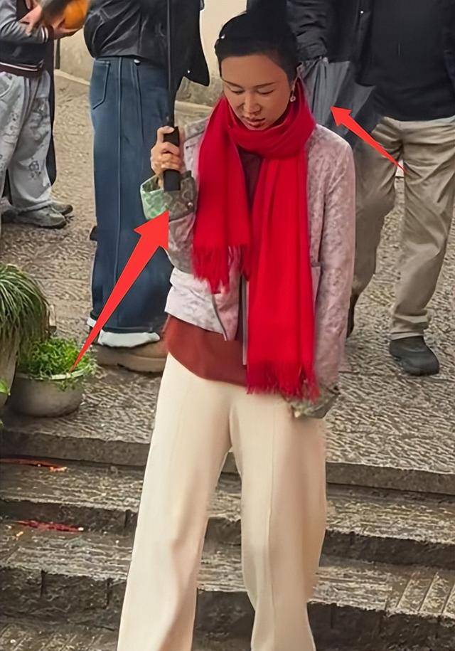 她身上穿了一件花色棉袄,下身搭配一条奶白色的休闲裤,整套穿搭没有任何精致感可言,反倒显得格外土气老气,完全看不出她往日里偏爱旗袍、仙气长裙的审美。