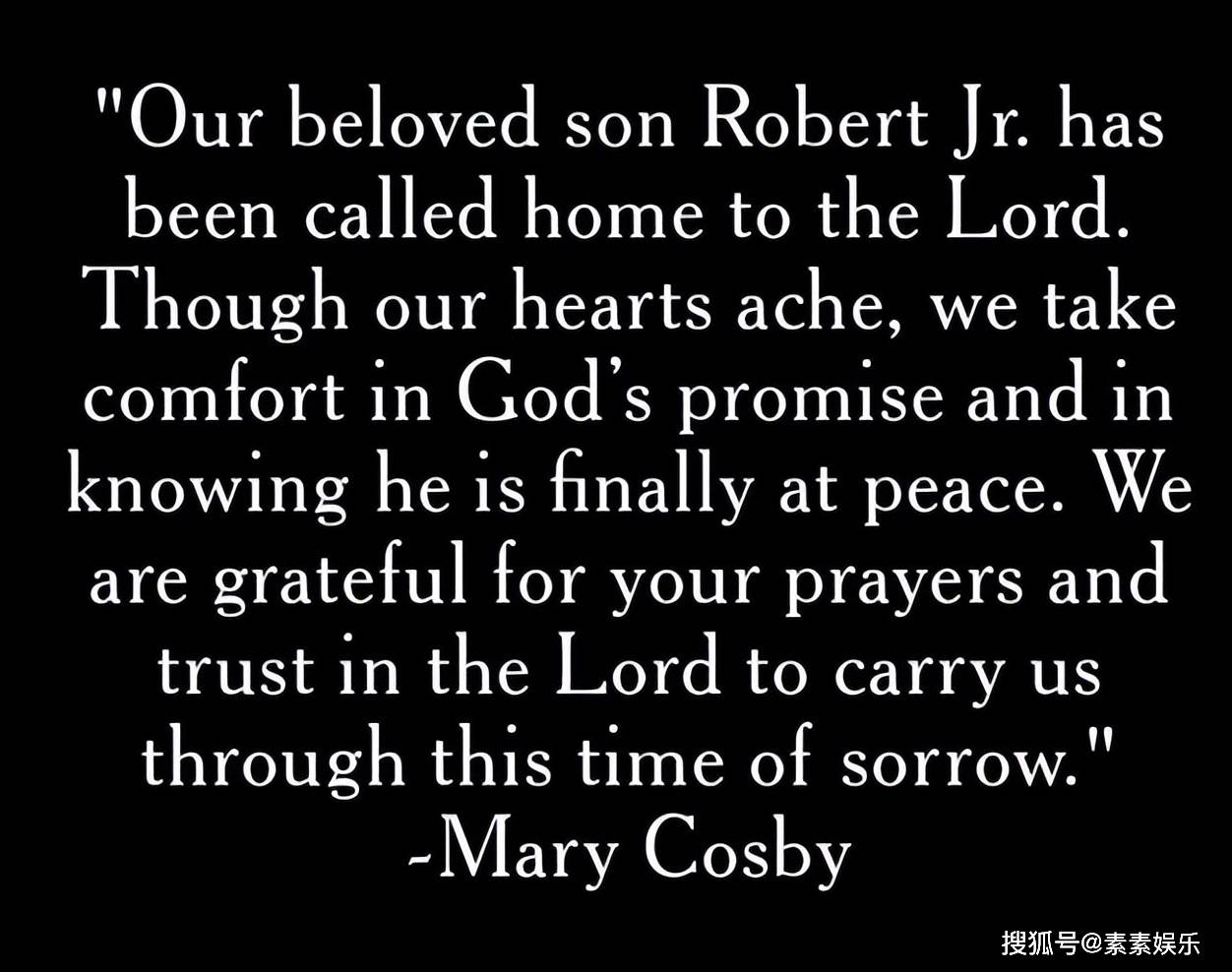 罗伯特科斯比是玛丽科斯比唯一的儿子,独子猝死离世,目前玛丽的工作已经全面无限延期。