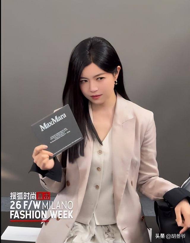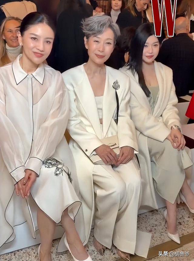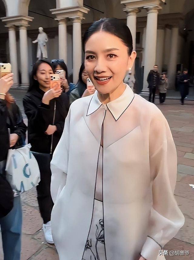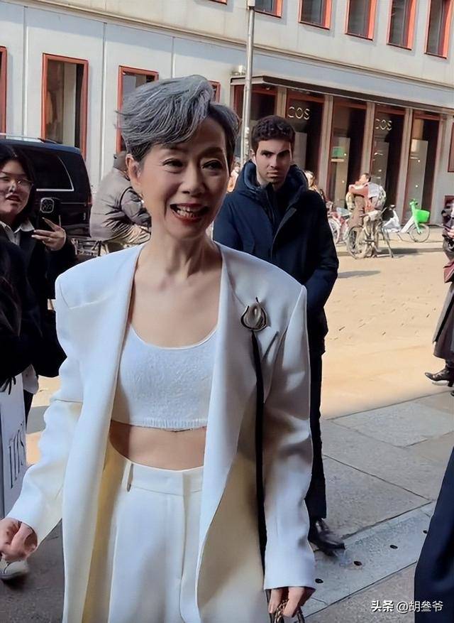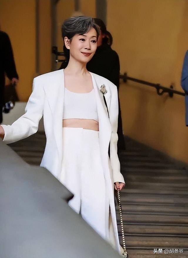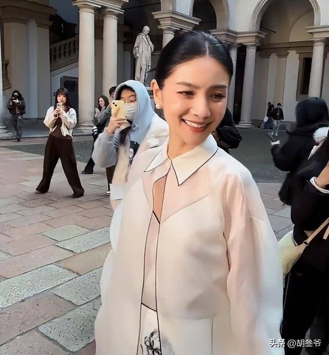 和陈妍希的甜美不同,50岁的胡可亮相米兰时装周,走的是知性温婉的路线。