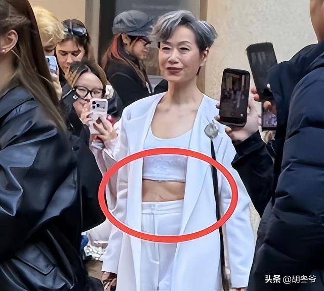 更让人惊艳的是,63岁的她大方穿露脐装、踩细高跟,一头标志性的银发成为全场最特别的风景。