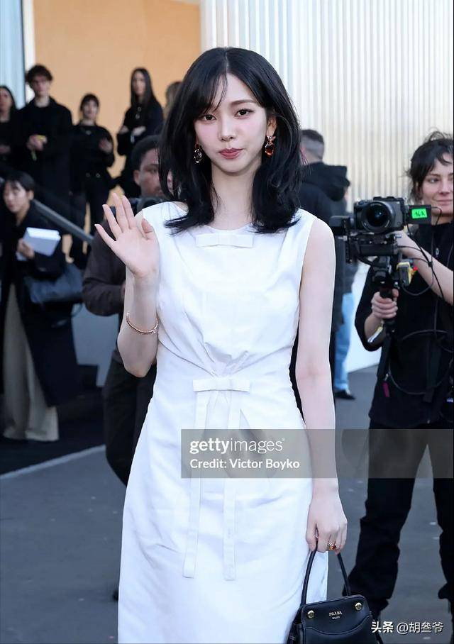 她作为Prada全球代言人,身穿全球首穿未公开发布的2026 Days of Summer 超季白色套装。
