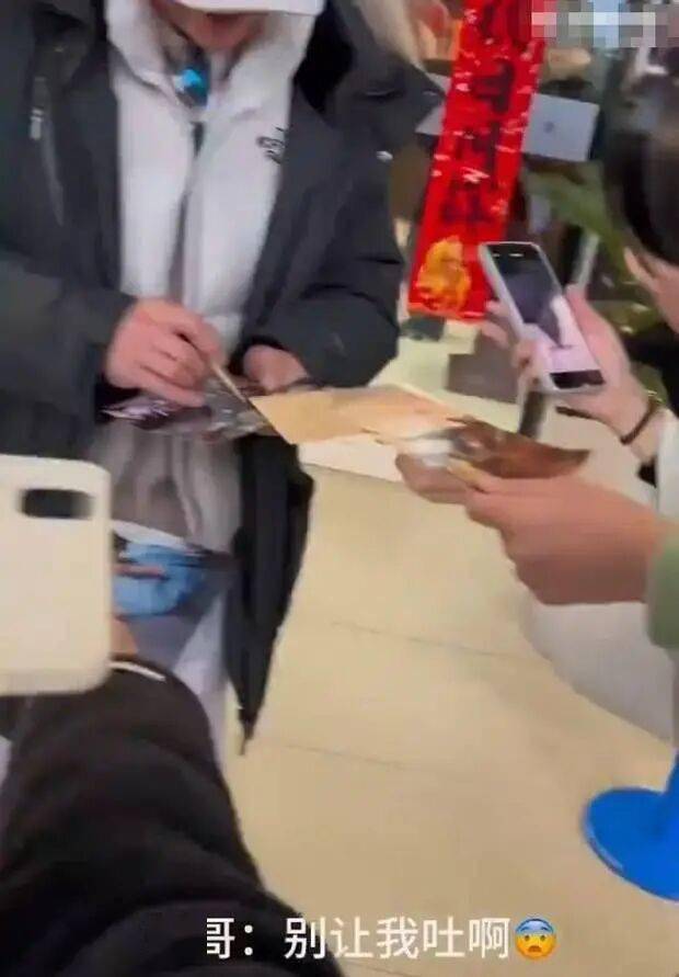 近日,有粉丝现身机场为吴京接机。吴京也立刻上前和粉丝互动,为他们签名。当有粉丝要“to签”时,吴京一脸关切询问对方:“你要吐了啊?”