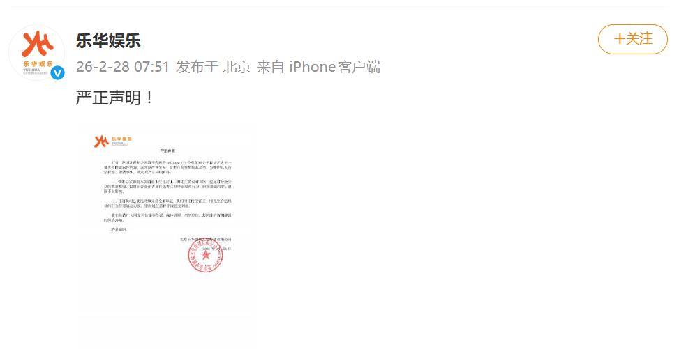 眼看风波发酵,乐华娱乐的反应堪称“雷霆速度”。当天就甩出一纸加盖公章的严正声明,定性干脆利落:内容纯属恶意造谣,严重失实!声明里不仅要求相关方立刻删除,更是直接亮出法律武器——已委托律师全面取证完毕,放话要“依法追究到底”。这态度,摆明了是要硬刚,不留任何模糊空间。