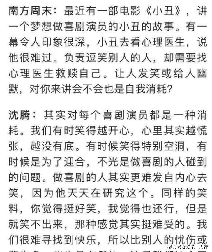 私下里的沈腾,和银幕上那个浑身是梗的他判若两人。搭档马丽说过,他私下很安静,甚至有点闷。他自己也承认,录制那些需要全程亢奋的搞笑综艺前,需要做很久的心理建设。这似乎成了喜剧演员的宿命:把痛苦留给自己,把欢乐带给别人。卓别林、憨豆先生、金凯瑞,这些世界级的喜剧大师,都曾深受抑郁症困扰。陈佩斯说得更直白:“喜剧演员是拿自己献祭给艺术。他们本身不太会笑,只有把自己的痛苦通过另外一种形式发掘出来,才能让大家开心。而越是这样,他就越痛苦。”