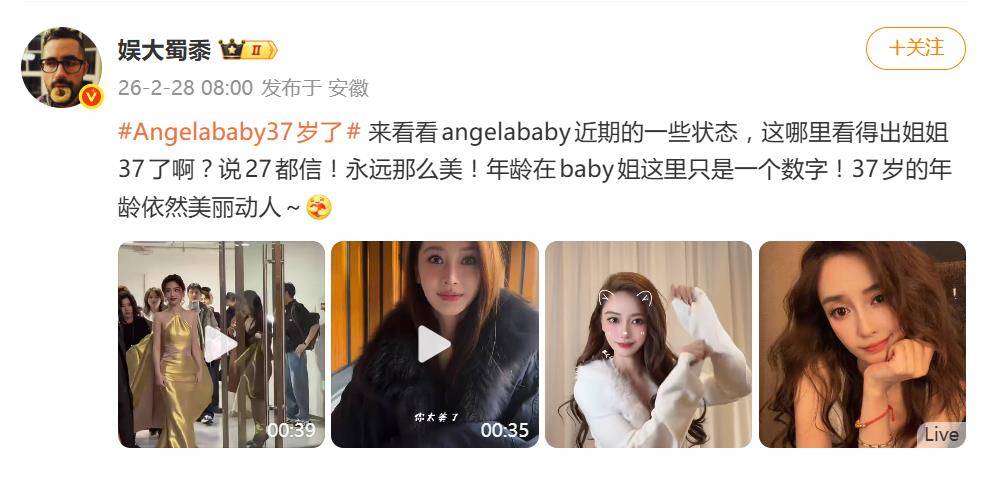 2月28日,演员杨颖(Angelababy)的37岁生日,硬是过出了“27岁”的轰动效果。工作室的一波温情祝福和粉丝的盛大应援,在全网刷足了存在感,但所有话题最终都精准指向同一个焦点:这位女明星的“冻龄术”到底是怎么修的?