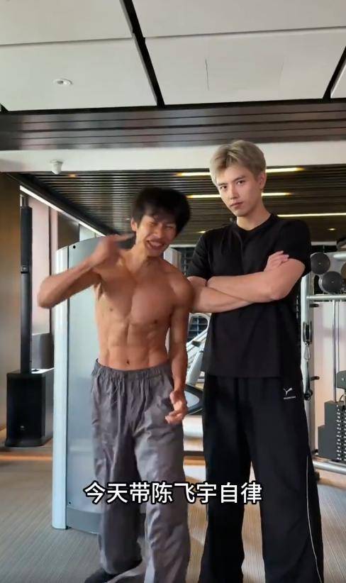 还有一次深夜,有网友在健身房偶遇他,当时他正为了角色加练塑形,没想到还碰到了陈哲远,两人互相打招呼,没有一点明星架子,被网友调侃是“卷王碰面”。