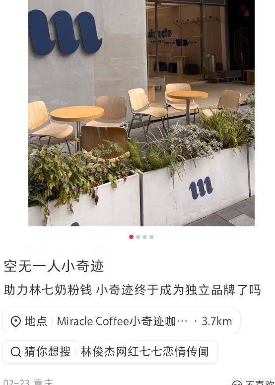 咖啡店的生意惨淡倒不一定是恋情造成的,但评论区不少网友现身说法,直言在林俊杰官宣恋情后,自己就开始抗拒这个品牌了,否则去这里买咖啡,总有一种在给嫂子送钱的感觉,至少自己心里会有点过不去。