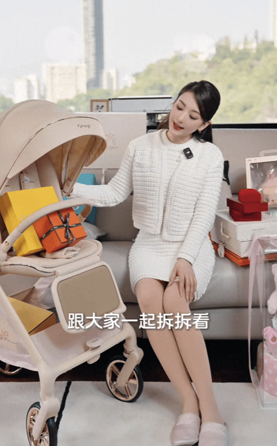 小姑娘手上戴个小玉镯倒是非常的漂亮,但好看不适用罢了,小孩子戴着容易打到自己,但架不住寓意很好,手镯也是抓而且拴住福气的意思,还晒出各种小衣服、口水巾、玩偶等等,反而显得最后的香槟色可折叠的婴儿车有点廉价了。