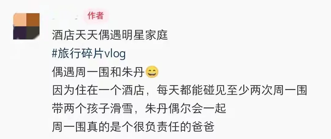 网上那段“偶遇周一围朱丹”的视频和文字,说得很具体,住同一个酒店,白天总能撞见周一围带两个孩子去滑雪,一天至少能碰上两次那种,他负责接送,朱丹偶尔跟着出现,整件事听着不像摆拍,更像过年出来遛娃的家庭流水账。