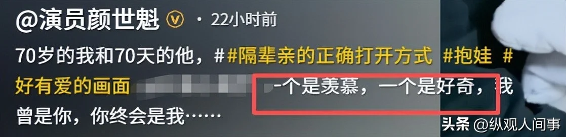 深扒之下才知道,这个可爱的小“孙子”,其实是别人家的,颜世魁只是觉得有缘,才上手逗了逗。