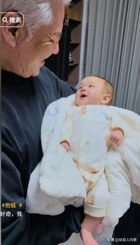 只是这满是岁月痕迹的模样,和怀中白嫩软糯、满脸胶原蛋白的 70 天婴儿形成了强烈的视觉反差。