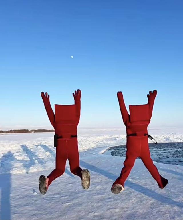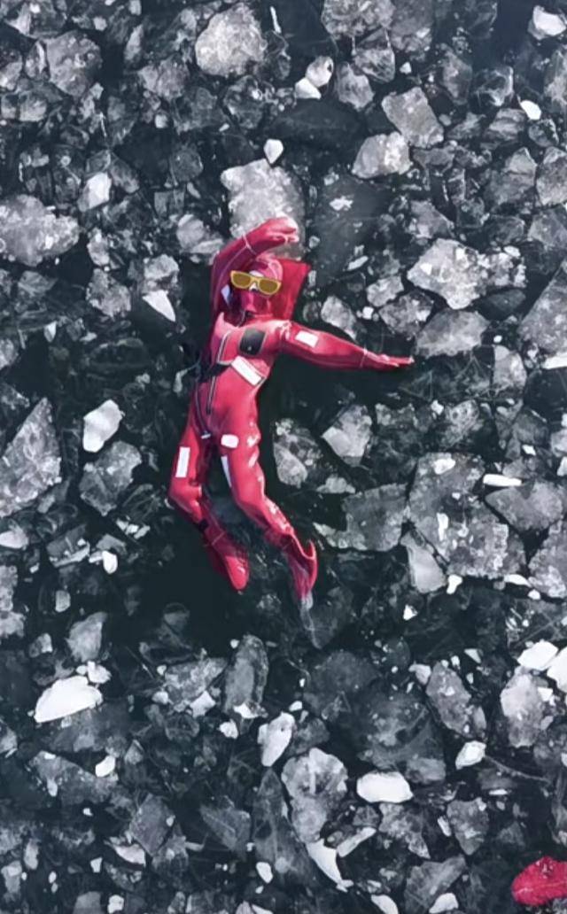 除了融入当地的生活以及玩雪之外,苟芸慧还专门去体验了冰浮,在零下低温的环境里穿着保暖潜水服,徜徉于结了冰的湖面上,苟芸慧也是十分的享受其中。