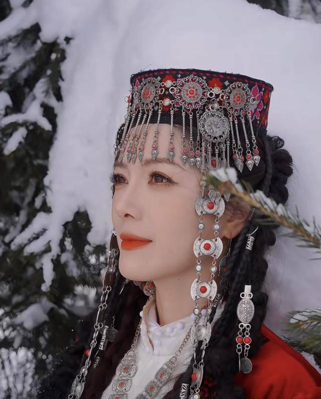 为了更加融入当地的生活,苟芸慧特地尝试了新疆姑娘的造型,她穿着火红的新疆服饰,化了精致的妆容,尤其是那烈焰大红唇颇为吸睛,已经42岁的她身材保持的相当不错,腰线突出,面部的皮肤更是白到发光。