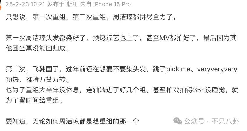 毕竟,在之前的一次I.O.I五周年重组计划中,周洁琼还曾特意染好粉发赴韩,录制综艺预热。
