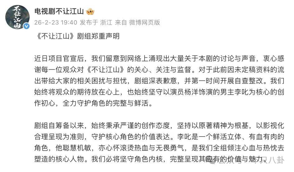 眼看负面舆论愈演愈烈,直到当天晚上,《不让江山》剧组才终于发布官方声明回应。