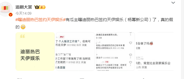 杨幂的天伊娱乐作为新公司,尚无承接顶流艺人的资源案例,签约迪丽热巴,合理性不足。