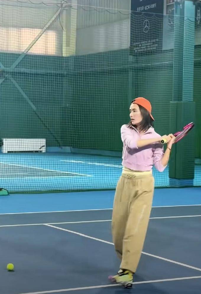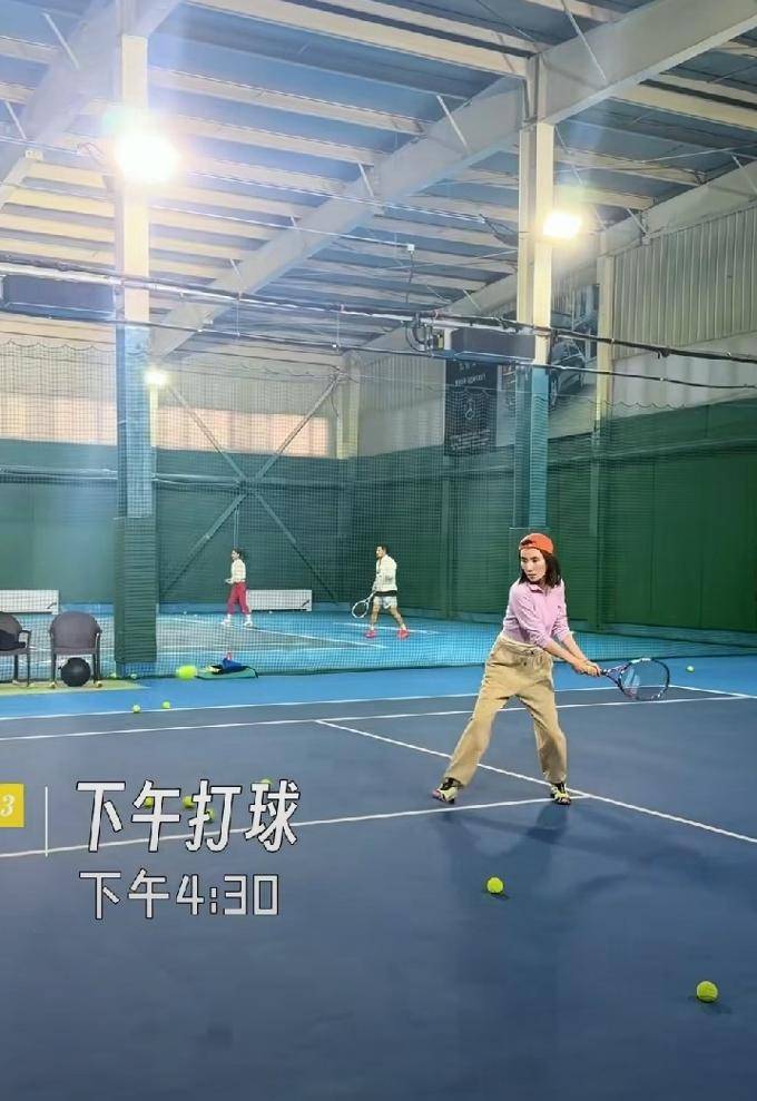 转眼间,到了下午一点,她在家中与爸爸进行了销售直播,接着她走到球场上打网球,她的挥拍动作充满了活力,给人一种非常有活力的感觉,