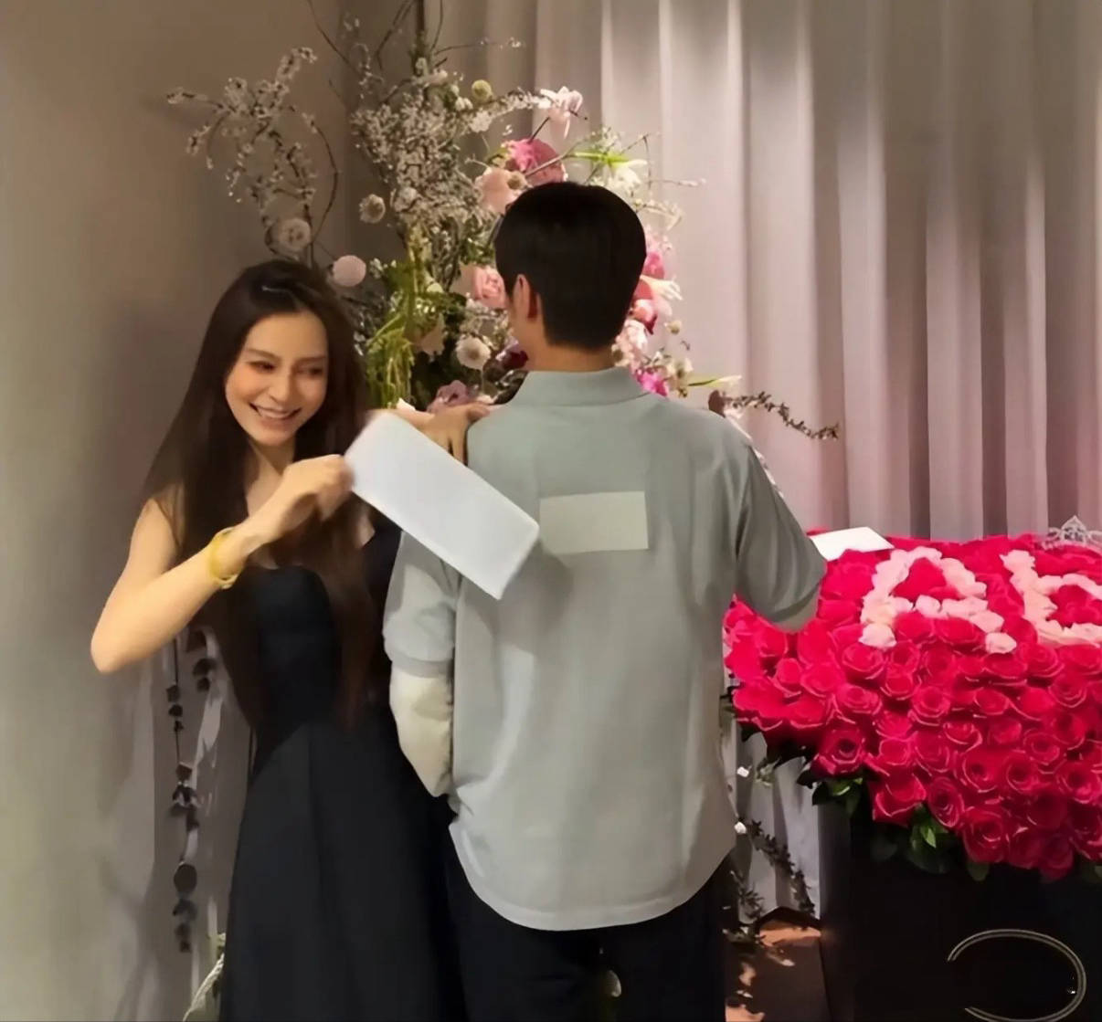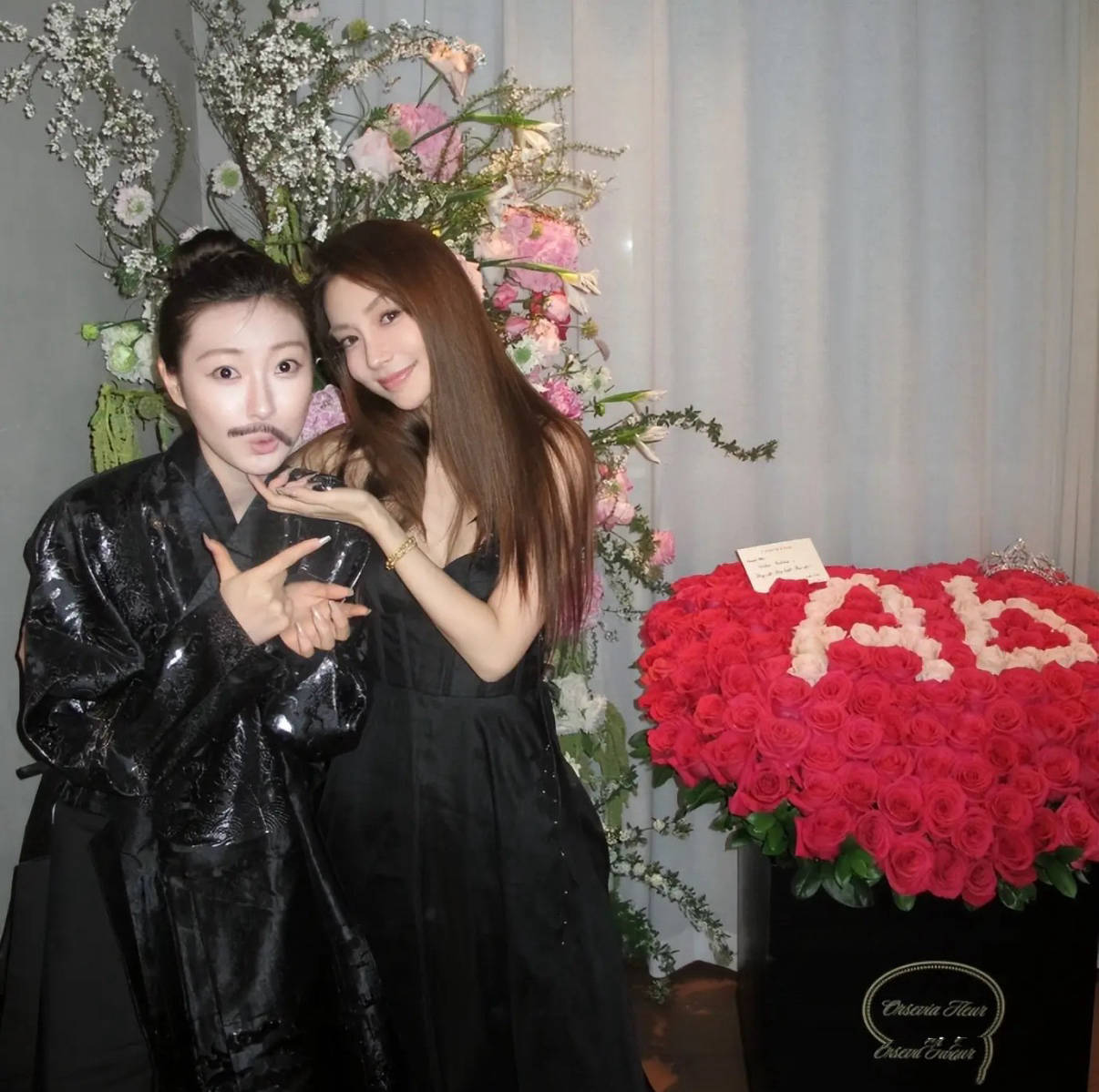物是人非、往事不可追。在现场还看到了超大的巨型玫瑰花束,点缀的AB字样,也表现出朋友对她的重视。