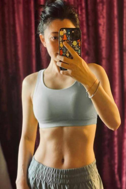 她常年健身,早就有马甲线、人鱼肌。