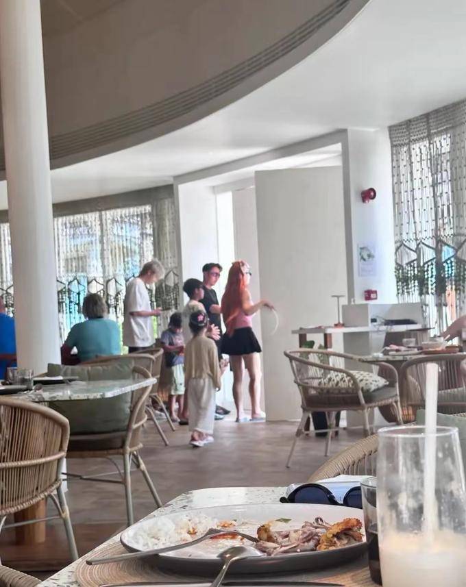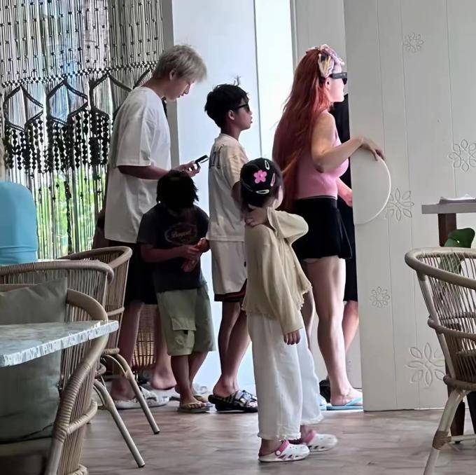 最小的儿子也来了,全家5口人在海边尽情地玩耍。冉莹颖此次造型相当大胆,挑染了红头发搭配一件粉红色紧身T恤。