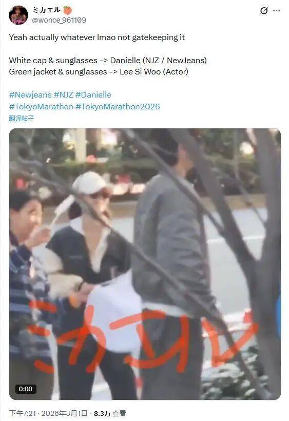 当地时间2026年3月1日,有网友在社交平台X上发布的这段视频,迅速将已从NewJeans中除名并陷入合约纠纷的Danielle,再次推至舆论焦点。画面拍摄于日本东京马拉松现场,镜头扫过热闹的助威人群,定格在一位手持韩国国旗和白色横幅、望向镜头的女性身上。尽管装扮低调,但粉丝很快认出,这正是久未公开露面的Danielle。