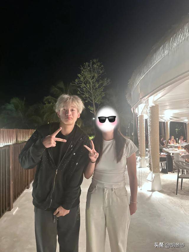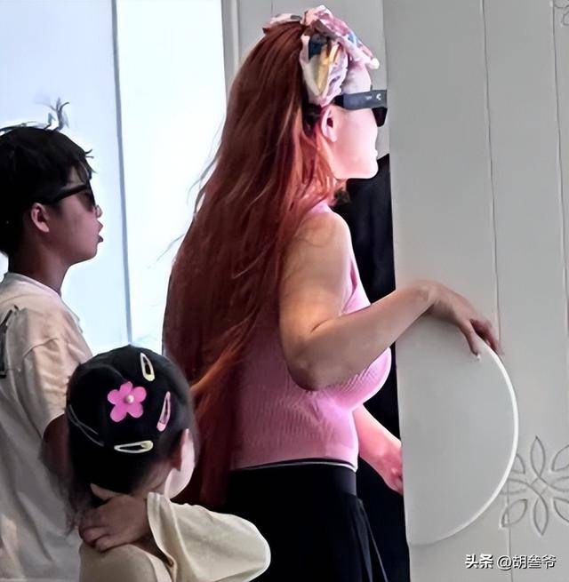 冉莹颖倒是没和网友正面合照,只拍到了侧面和背影,她染了一头亮眼的红发,上身是粉色无袖短衣,下身搭超短裙,脚踩人字拖。