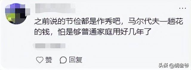 也有人质疑:“之前说的节俭都是作秀吧,马尔代夫一趟花的钱,怕是够普通家庭用好几年了。”