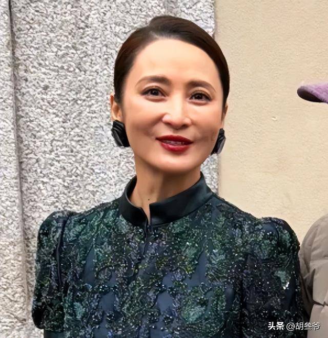 当天她将蓝绿色手工刺绣套装穿在身上,高挑的身材被完美勾勒,简约的设计却气场全开,大光明的发型搭配一抹红唇,直接成了成熟女人的最佳范本。