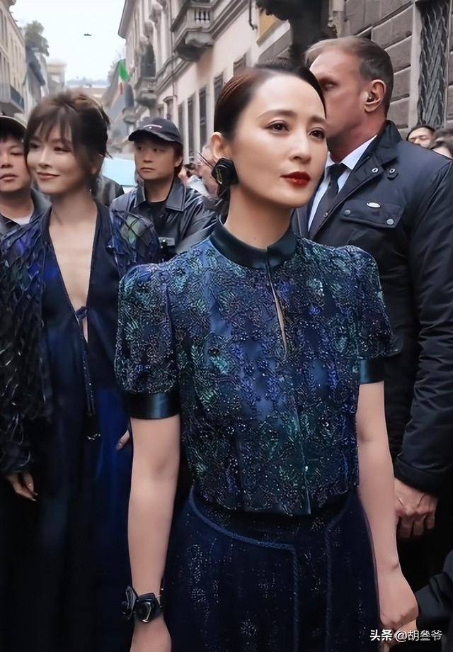 和文咏珊的性感惊艳不同,蒋勤勤亮相米兰时装周,走的是大气优雅的路线,一出场就自带“当家主母”的从容气场。