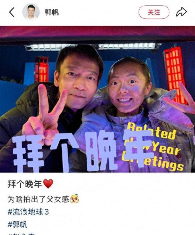 2026年3月1日,郭帆发 布了 一张 与片场 的合 影,并 附上了这样的文 字:“ 为何在晚年 的时光中展现出了 深厚的父女 情感”。